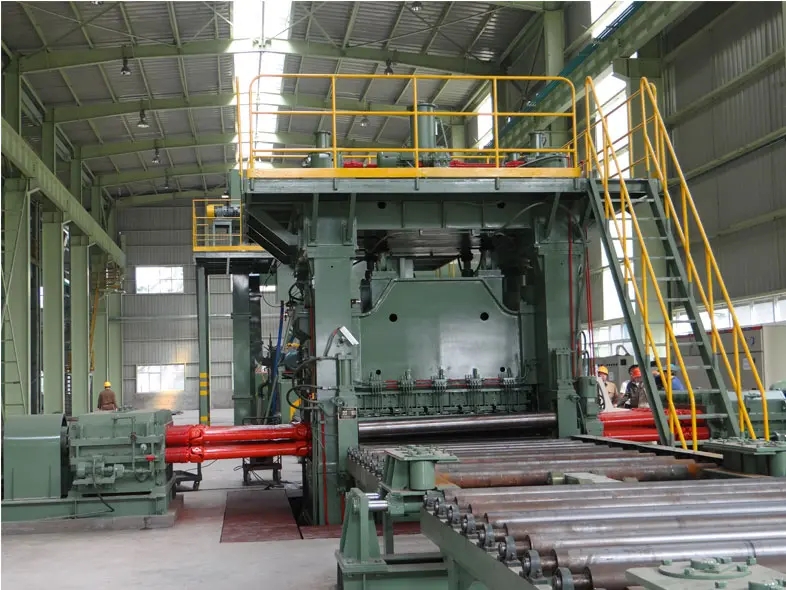 - 傳動裝置采用分流式主傳動技術(shù),多臺電機(jī)運轉(zhuǎn)帶動多根工作輻條轉(zhuǎn)動。進(jìn)出料軌跡由輥式矯平機(jī)控制臺控制,電動可逆,保證兩者運動速度相同。