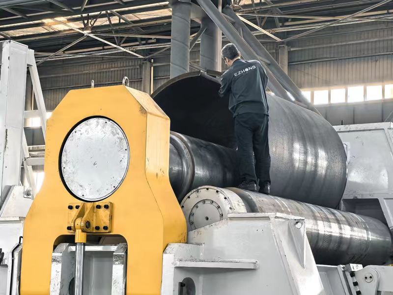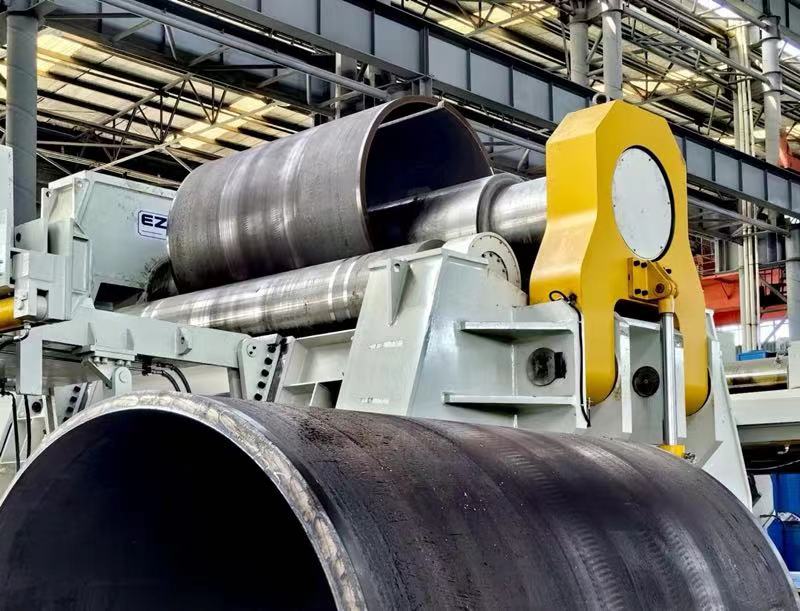 EZHONG為東歐機(jī)械公司設(shè)計(jì)制造的120*4000數(shù)控四輥卷板機(jī)在EZHONG工廠進(jìn)行了發(fā)貨前的測(cè)試,在沒(méi)有地基的情況下卷制了80mm*2200mm*1800直徑*355mpa工件,機(jī)器使用了最新的CNC系統(tǒng),操作者把工件相關(guān)數(shù)據(jù)輸入計(jì)算機(jī)后,機(jī)器自動(dòng)按照設(shè)計(jì)的卷制步驟將工件卷制成形,工件成型后直邊系數(shù)很短,無(wú)錯(cuò)邊現(xiàn)象,得到了客戶的贊賞。