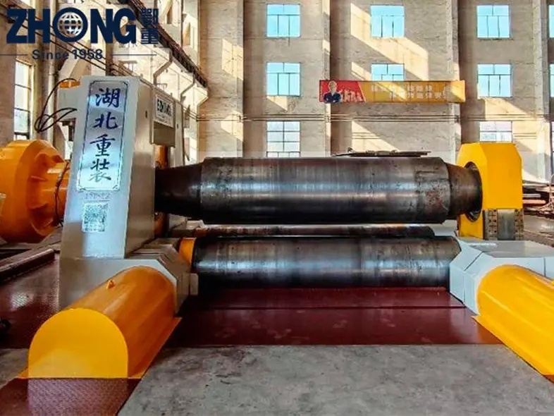 這臺(tái)機(jī)器是三輥全液壓卷板機(jī),具有可調(diào)中心距和電液控制驅(qū)動(dòng)結(jié)構(gòu)。該型號(hào)性能優(yōu)異,易于操作。憑借板端預(yù)彎曲的功能,它可以一次喂入金屬板,并完成板端的預(yù)彎曲和工件的滾動(dòng),而無需轉(zhuǎn)身。